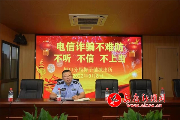 恒口分局梅子鋪派出所深入轄區(qū)開展預防養(yǎng)老詐騙暨電信詐騙宣講會