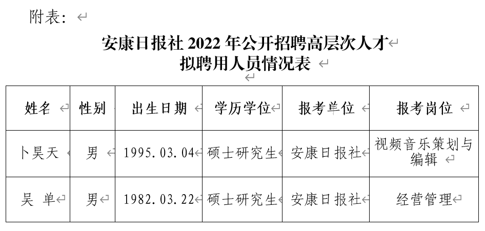 安康日?qǐng)?bào)社2022年公開(kāi)招聘高層次人才擬聘用人員公示