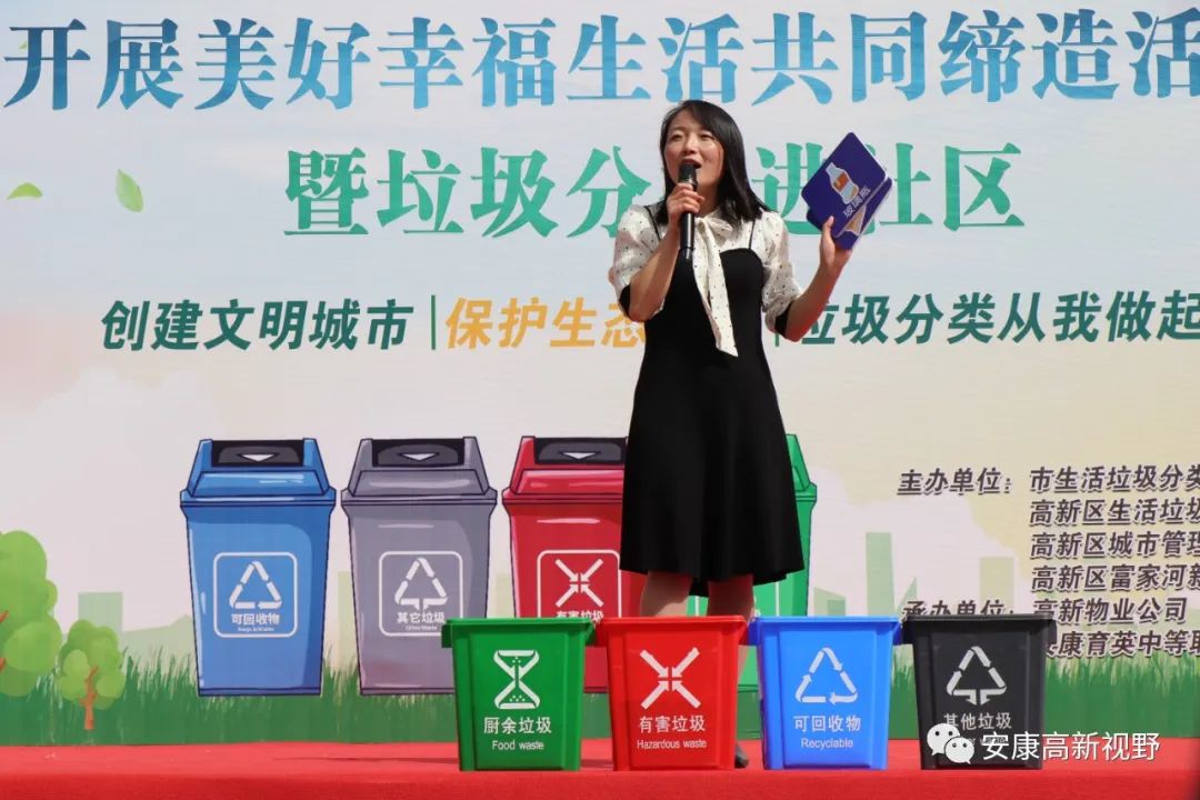 4月7日,由市生活垃圾分類辦、安康高新區(qū)城市管理執(zhí)法局、高新區(qū)生活垃圾分類辦和富家河新城黨委主辦,高新物業(yè)公司和安康育英中等職業(yè)學(xué)校承辦的“美好環(huán)境與幸福生活共同締造”暨生活垃圾分類宣傳進(jìn)社區(qū)活動(dòng)在富家河社區(qū)舉行。