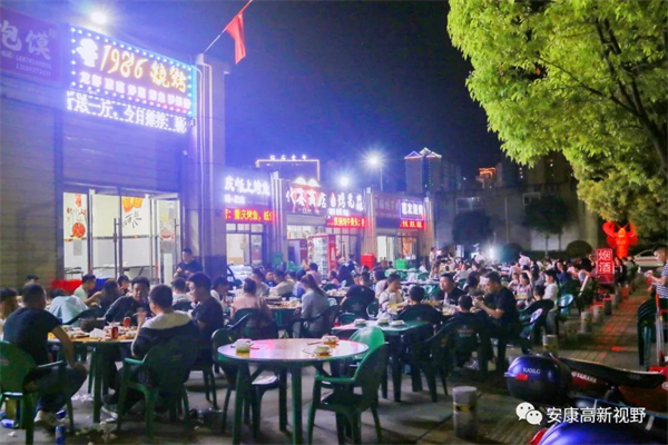逛累了之后,美食之旅隨之開啟,除了各酒店餐飲可享受安康特色美食外,小吃夜市也成了市民游客在高新區(qū)饕餮一頓的不二選擇,走進(jìn)美食街,燒烤、火鍋、小龍蝦等特色美食讓人目不暇接。華燈初上,商家已進(jìn)入滿載狀態(tài),招呼聲、碰杯聲此起彼伏,店里、店外座無虛席,一桌桌市民游客享受著擼串啤酒的假日自在時光,夜經(jīng)濟(jì)在這個“五一”進(jìn)一步激發(fā)消費(fèi)的同時,也帶回來了人氣和煙火氣。