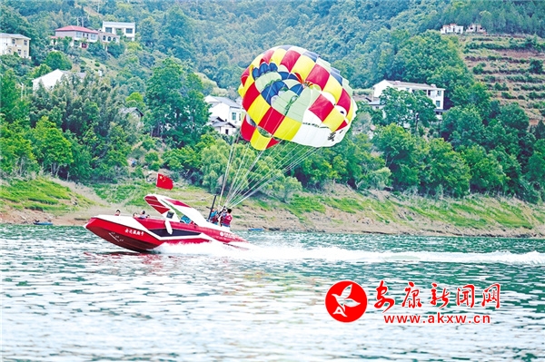 休閑勝地翠屏島,最大的亮點是玉清橋的彩虹瀑布,游客從橋下經(jīng)過,感受“瀛湖之水天上來”的曼妙,這也是瀛湖為游客送上的初夏第一絲清涼。橋頭幸福的天梯、鳥巢,成為排隊拍照的絕佳點位。運動場上,滾鐵環(huán)、射箭、投壺、打籃球,讓游客流連忘返。兒童樂園旁,微型爆米花機勾起了孩子們參與的興趣,彩繪激發(fā)了孩子們的繪畫熱情。瀛湖水上嘉年華,精彩刺激的水上項目帶給游客酣暢的體驗,游客紛紛直呼“過癮”!