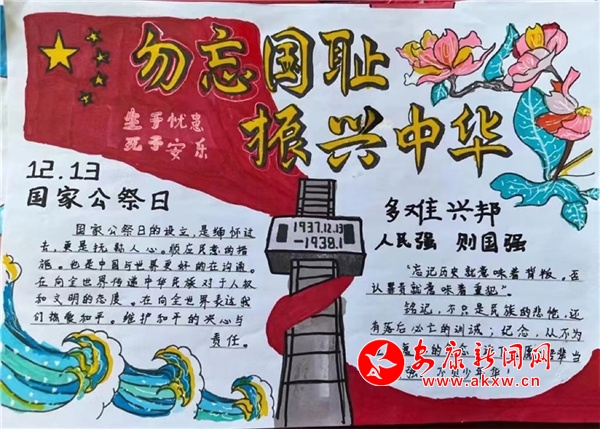 為緬懷抗戰(zhàn)先烈的英雄事跡,牢記侵略戰(zhàn)爭給中國人民造成的深重災(zāi)難,增強(qiáng)少年兒童的社會責(zé)任感和使命感,12月13日,曾家初級中學(xué)組織開展了以“勿忘國恥 吾輩自強(qiáng)”為主題的國家公祭日主題宣傳教育活動。(圖文/吳金蕾)?