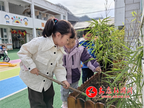 鎮(zhèn)坪縣上竹鎮(zhèn)幼兒園周圍山區(qū)有大面積的竹林,竹子也是當地人生活中常見的植物。為了讓孩子有更多的探索資源,將種植區(qū)得以延伸,幼兒園開發(fā)利用了操場的角落種竹子,老師和孩子們一起閱讀了繪本故事《小竹筍長啊長》,了解了竹子的生長過程,利用家園合作的契機,收集了當地的竹苗。