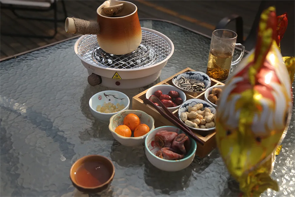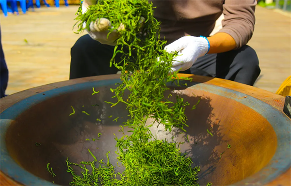 翠屏島瀛湖茶舍,我們推出了圍爐煮茶項目,炒茶師傅現場殺青、揉捻、干燥,隨后將瀛湖的明前茶呈送到游客面前。當然,游客若有興趣,也可親自實操這難能可貴的體驗。