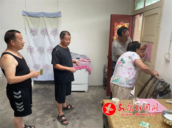 “奶奶,這是咱屋的防汛明白卡,我把我的電話給您存到手機(jī)里了,過段時(shí)間要是雨下大了您就給我打電話!”