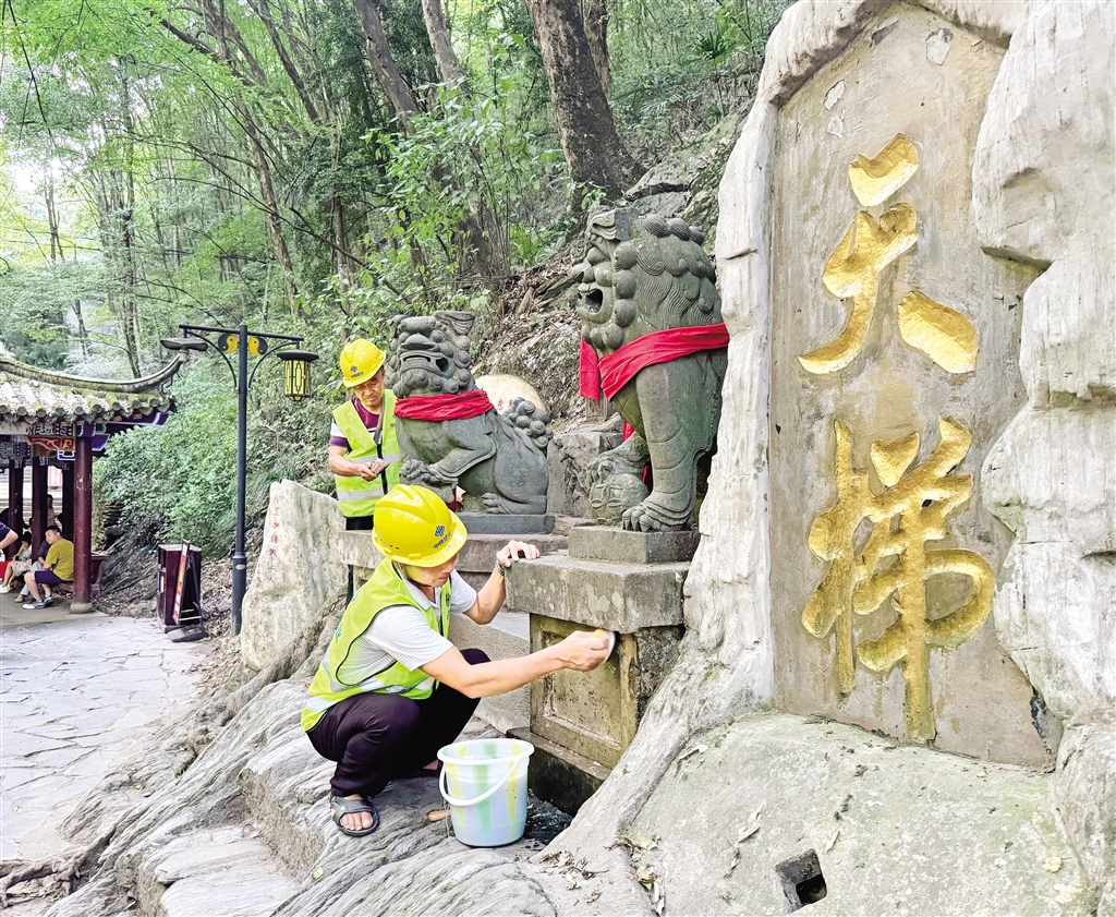 8月22日,工作人員正在香溪洞開展景區(qū)設(shè)施清理工作。據(jù)施工現(xiàn)場負責(zé)人介紹,香溪洞風(fēng)景名勝區(qū)管理局將會對供水、供電、照明等設(shè)施進行升級改造。(鄒一銘 攝)
