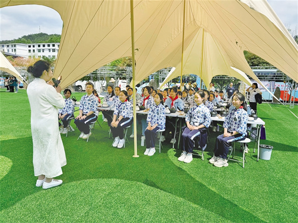 紫陽(yáng)小學(xué)研學(xué)活動(dòng)聆聽(tīng)茶藝課程。劉姝含 攝