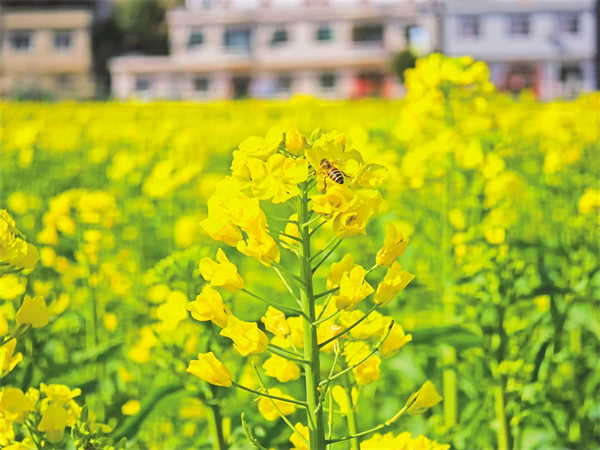 春暖花開(kāi),旬陽(yáng)市仁河口鎮(zhèn)水泉坪千畝油菜花海競(jìng)相綻放,慕名而來(lái)的游客們?cè)谟^光步道上觀光散步,三五伙伴一起拍照打卡、合唱民歌,欣賞高山出平川的獨(dú)特自然風(fēng)光。