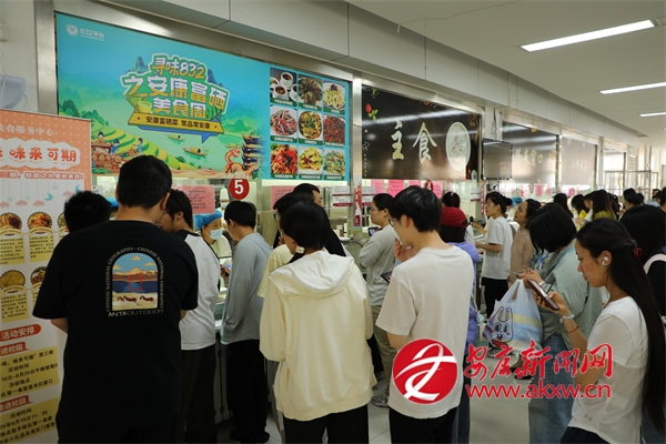 活動(dòng)在中國政法大學(xué)啟幕,現(xiàn)場設(shè)置了安康特色農(nóng)副產(chǎn)品品嘗展銷區(qū),琳瑯滿目的安康好物吸引著師生駐足挑選??豢火x、臘肉干、魔芋干、蜂蜜、琥珀核桃等特色食品吸引了眾多師生品嘗點(diǎn)贊。在學(xué)生食堂內(nèi),地方特色菜肴檔口前排起長隊(duì),安康廚師團(tuán)隊(duì)現(xiàn)場制作的安康蒸面、墨魚湯、酸辣魔芋、紅薯粉條炒肉末等菜肴給品嘗者帶來味蕾全新體驗(yàn),紛紛為這場“舌尖上的盛宴”點(diǎn)贊,讓他們在校園里就能體驗(yàn)到地道的安康風(fēng)味。