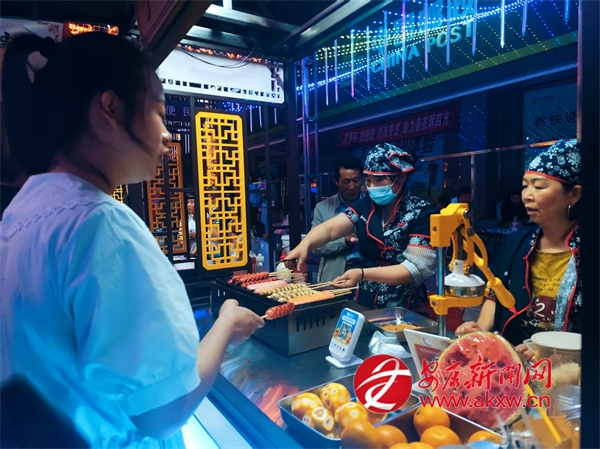 在三星街夜市攤點,攤主們熱情地吆喝聲此起彼伏??爵~、燒肉等美食在燈光映照下散發(fā)著誘人光澤。燒烤店內食客圍桌而坐,享受著美食與歡聲笑語交織的歡樂時光。來自西安的游客楊斌品嘗著美食,贊嘆道:“這里的夜市文化濃郁,地方特色獨特,讓我深切感受到了寧陜人的熱情好客?!?/p>