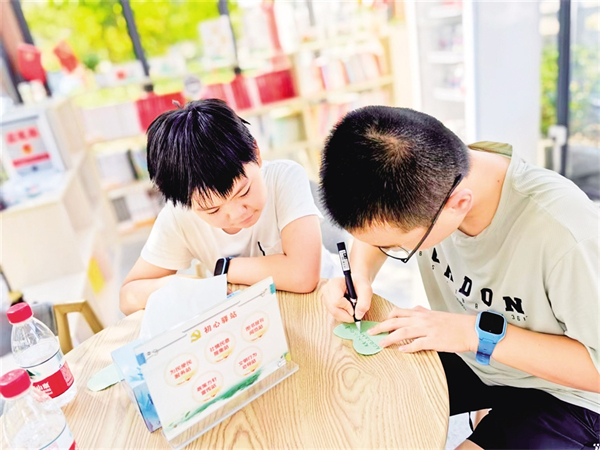 ?學生在新城社區(qū)初心驛站寫下微心愿。