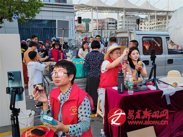 △ 漢陰縣蒲溪鎮(zhèn)第一書(shū)記組團(tuán)在縣村超比賽場(chǎng)地外直播賣(mài)桃子,累計(jì)幫銷(xiāo)紅桃2.8萬(wàn)余斤。