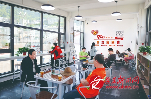 △ 嵐皋縣初心驛站中正在整頓休息的群眾以及外賣(mài)員。