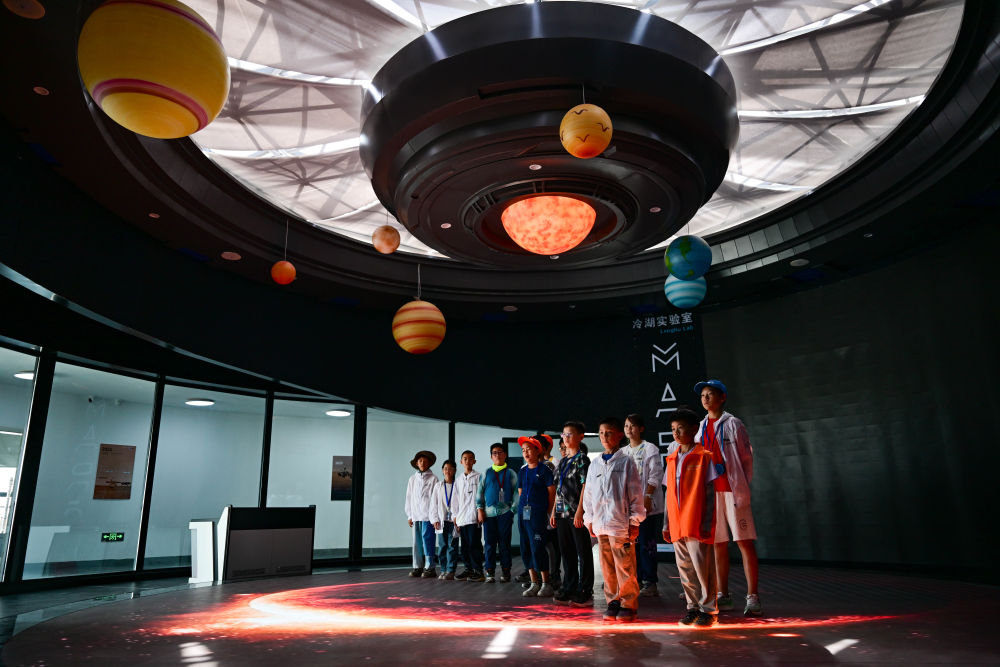 2025年7月29日,參加暑期研學(xué)的小朋友在青海省海西蒙古族藏族自治州冷湖鎮(zhèn)“冷湖實(shí)驗(yàn)室”學(xué)習(xí)天文知識(shí)。冷湖鎮(zhèn)曾是因石油而興、又因油盡而沉寂的工業(yè)遺址小鎮(zhèn)。然而,得天獨(dú)厚的地理?xiàng)l件,讓冷湖鎮(zhèn)成為理想的觀星地。近年來(lái),當(dāng)?shù)匕l(fā)展科幻特色文旅,讓戈壁小鎮(zhèn)煥發(fā)新的生機(jī)。冷湖天文觀測(cè)基地引進(jìn)十余家科研單位的數(shù)十臺(tái)望遠(yuǎn)鏡,依托天文資源和戈壁奇景,打造火星實(shí)驗(yàn)室、黑獨(dú)山等“出圈”地標(biāo)。連續(xù)舉辦多屆的“冷湖科幻文學(xué)獎(jiǎng)”,更讓這片土地成為科幻創(chuàng)作的新高地。冷湖鎮(zhèn)以科幻點(diǎn)亮文旅新場(chǎng)景,也為中國(guó)西北工業(yè)小鎮(zhèn)的轉(zhuǎn)型探索出一條充滿想象力的新路徑。