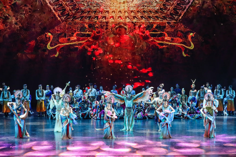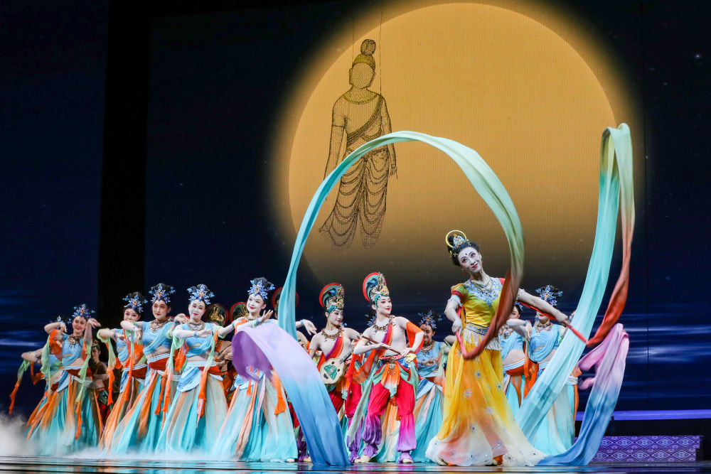 ??2025年9月20日,演員在敦煌大劇院表演新版《絲路花雨》。1979年,大型民族舞劇《絲路花雨》在中國西北誕生。編創(chuàng)者們從敦煌莫高窟的壁畫和彩塑中尋找靈感,將壁畫上凝固了千年的舞姿,轉(zhuǎn)化為動態(tài)舞蹈語言。40多年來,《絲路花雨》累計演出超4000場,足跡遍布40多個國家和地區(qū),被譽(yù)為“中國舞劇的里程碑”和“活的敦煌壁畫、美的藝術(shù)享受”。此次新版歷經(jīng)兩年半創(chuàng)排,通過復(fù)原與創(chuàng)新對經(jīng)典藝術(shù)進(jìn)行當(dāng)代詮釋,彰顯了中華優(yōu)秀傳統(tǒng)文化的生命力。