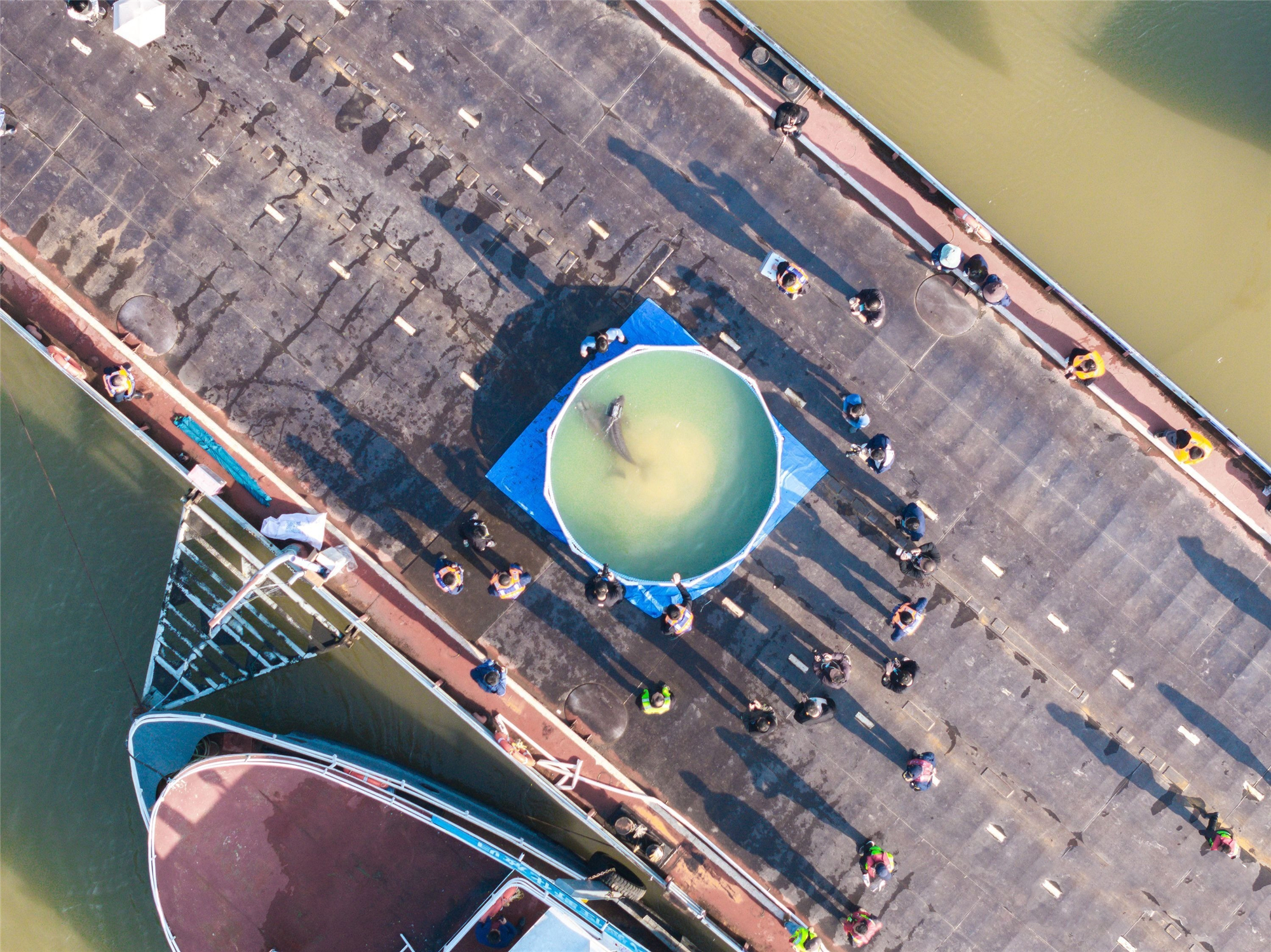 11月14日,在湖北洪湖市長(zhǎng)江洪湖段,兩頭經(jīng)過(guò)野化訓(xùn)練的長(zhǎng)江江豚被放歸長(zhǎng)江干流,中科院水生所研究人員正實(shí)時(shí)監(jiān)測(cè)。這已經(jīng)是我國(guó)第二次開(kāi)展這樣的野化放歸行動(dòng)。