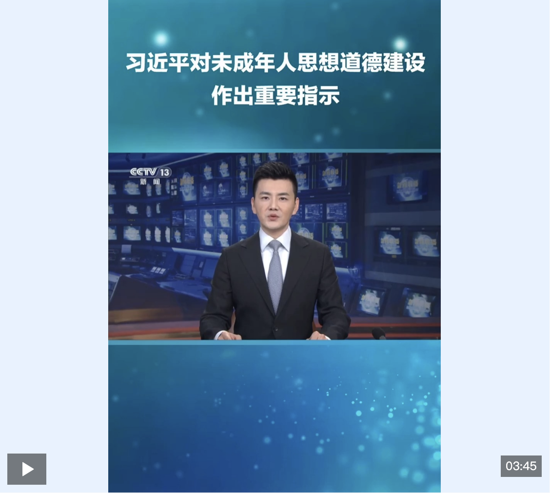 近日,習(xí)近平總書記對未成年人思想道德建設(shè)作出重要指示,要求落實立德樹人根本任務(wù),堅持把未成年人思想道德建設(shè)作為戰(zhàn)略性、基礎(chǔ)性工作來抓。(詳情>>)