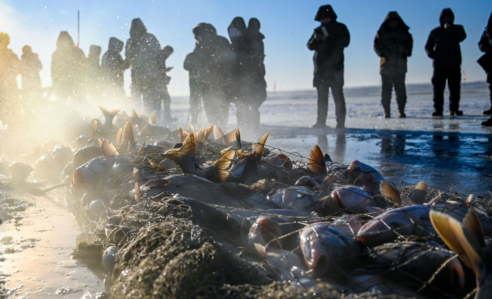 ??2021年12月26日,游客在查干湖冰面上觀看冬捕。近年來,查干湖在保護生態(tài)環(huán)境的基礎(chǔ)上,推動冬捕的可持續(xù)發(fā)展,通過科學規(guī)劃捕撈量、加強漁業(yè)資源管理等措施,確保查干湖漁業(yè)資源的穩(wěn)定增長。