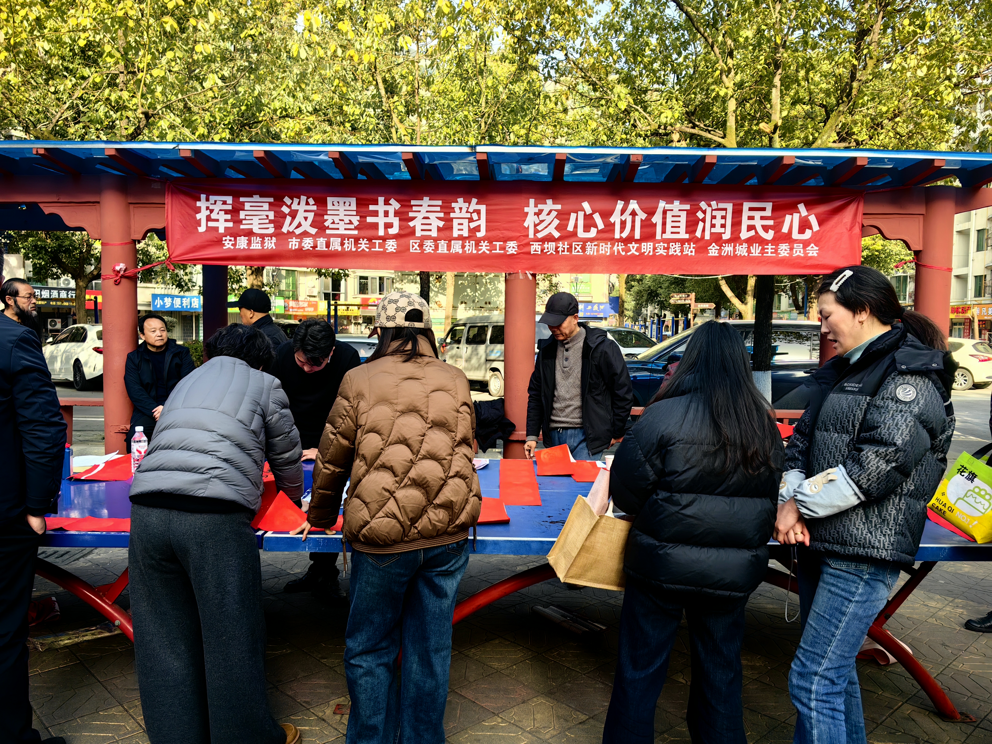 2月2日下午,安康監(jiān)獄、市委直屬機關工委、區(qū)委直屬機關工委、漢濱區(qū)西壩社區(qū)新時代文明實踐站組織市區(qū)書法家在金洲城小區(qū)為群眾義寫春聯(lián)。 鄭時根 攝