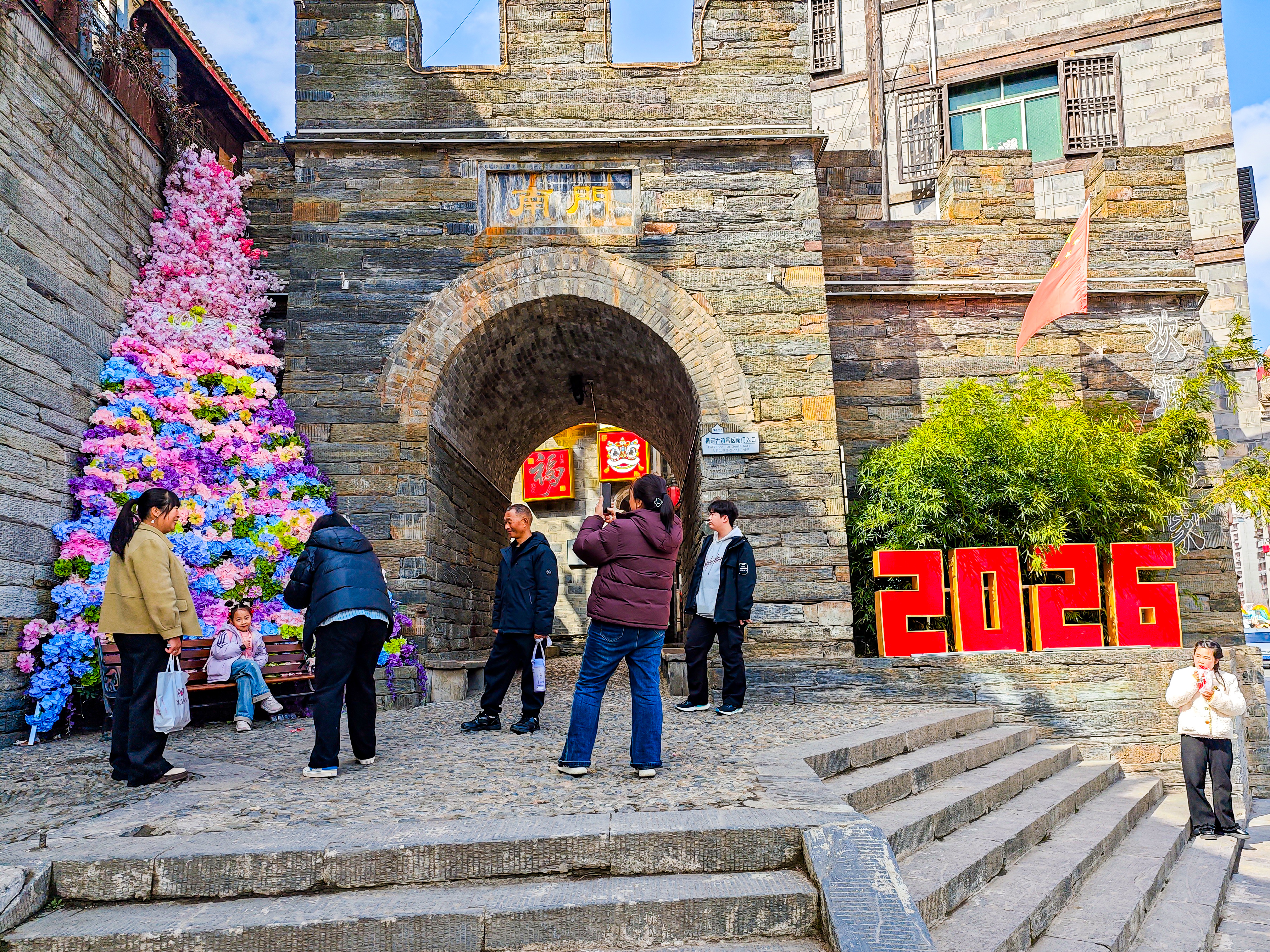 2月24日,旬陽市蜀河古鎮(zhèn)年味濃郁。青石板路上“2026”新春裝置與古建筑相映成趣,游客往來其間、拍照打卡,感受古鎮(zhèn)特有的節(jié)日氛圍。潘文進(jìn) 攝