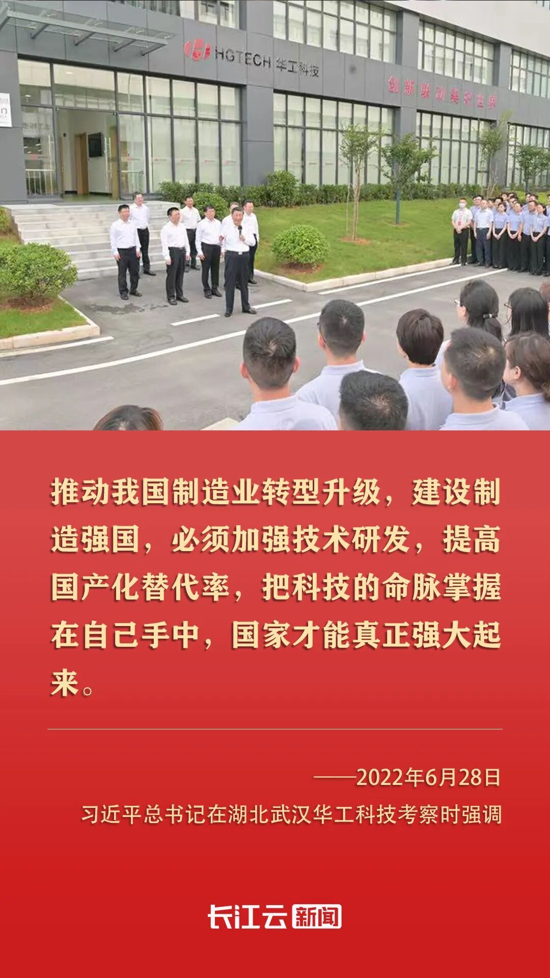 2022年6月,習近平總書記來到湖北武漢考察,第一站就來到光谷,來到華工科技。他指出,湖北武漢東湖新技術開發(fā)區(qū)在光電子信息產業(yè)領域獨樹一幟。要加強技術研發(fā)攻關,掌握更多具有自主知識產權的核心技術,不斷延伸創(chuàng)新鏈、完善產業(yè)鏈,為推動我國光電子信息產業(yè)加快發(fā)展作出更大貢獻。