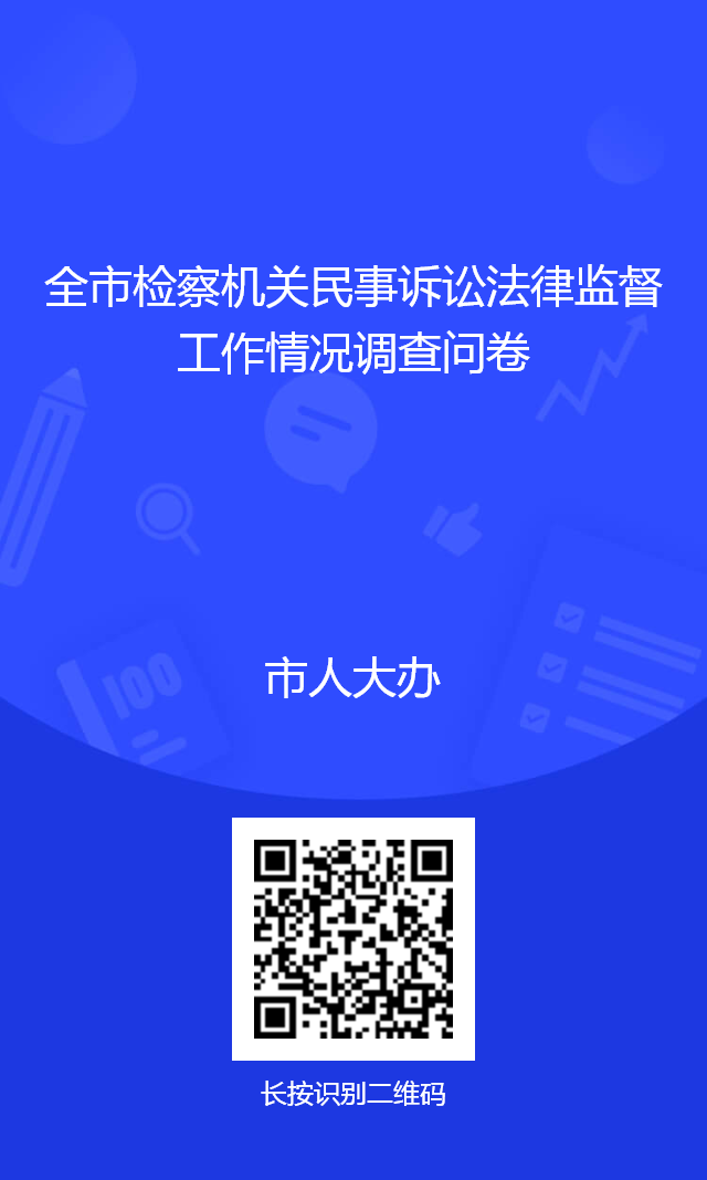 根據(jù)市人大常委會2026年度監(jiān)督工作安排,經(jīng)研究,決定于2026年3月中旬到4月下旬對全市檢察機關民事訴訟法律監(jiān)督工作開展專項評議。按照《安康市人民代表大會常務委員會專項工作評議辦法》規(guī)定,專項工作評議采取委托調(diào)查、視察評議、集中評議等方式進行。為擴大群眾參與,提高評議質(zhì)量,現(xiàn)向社會公開征求對全市檢察機關民事訴訟法律監(jiān)督工作的意見和建議。請掃描二維碼客觀公正、實事求是地填寫問卷,也可以通過信件、傳真或電子郵件方式送達,截止日期為2026年4月13日18時。