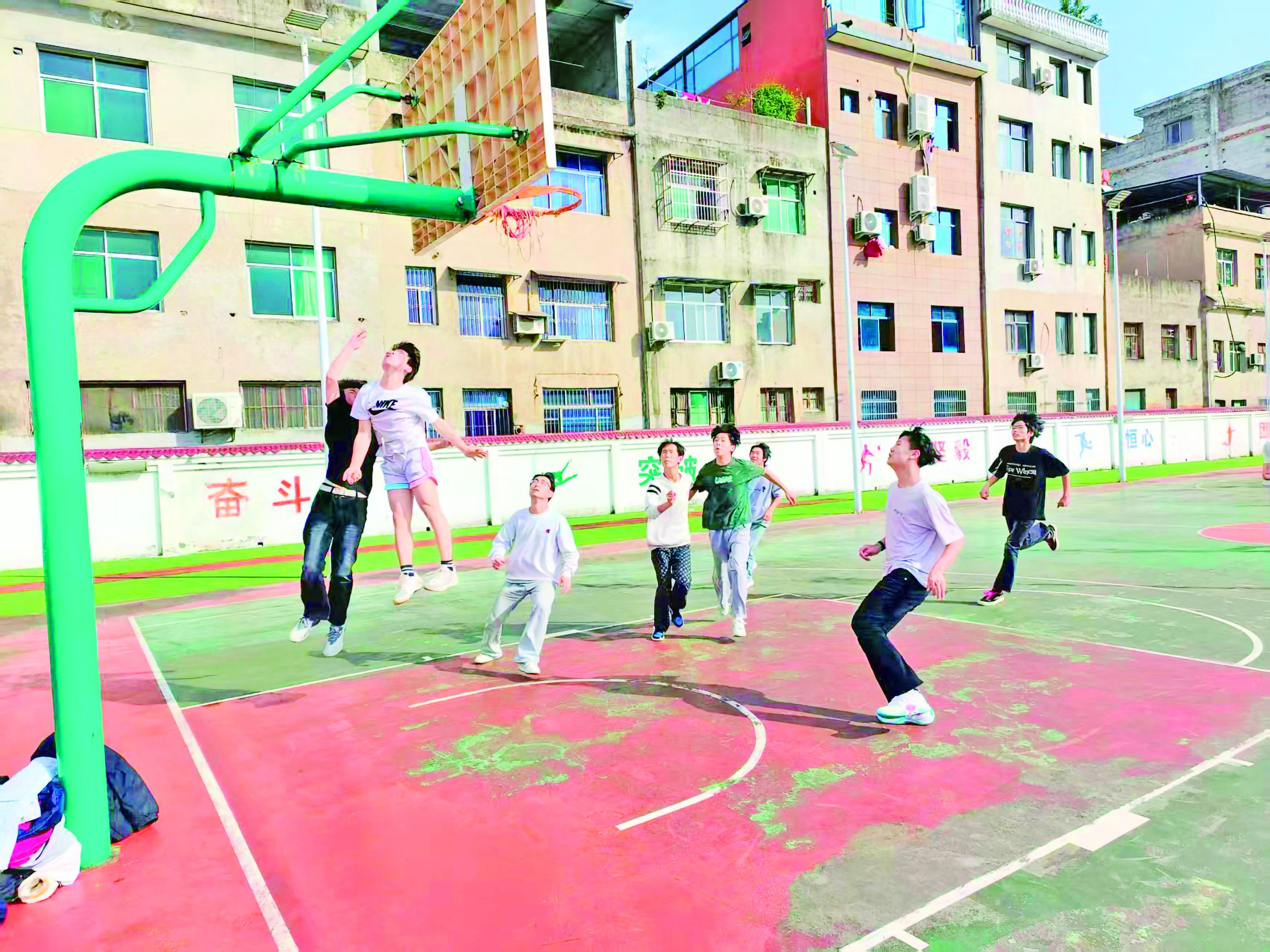 晨曦初露,操場(chǎng)已熱鬧起來。紅色的跑道上,三五個(gè)學(xué)生結(jié)伴慢跑,步伐整齊;籃球場(chǎng)上,幾個(gè)男生運(yùn)球、突破、跳投一氣呵成;羽毛球場(chǎng)地,扣殺聲、歡呼聲此起彼伏;還有跳繩的、拉伸的、踢毽子的……上午第一節(jié)課前,沒有統(tǒng)一早讀,只有奔跑跳躍的身影。