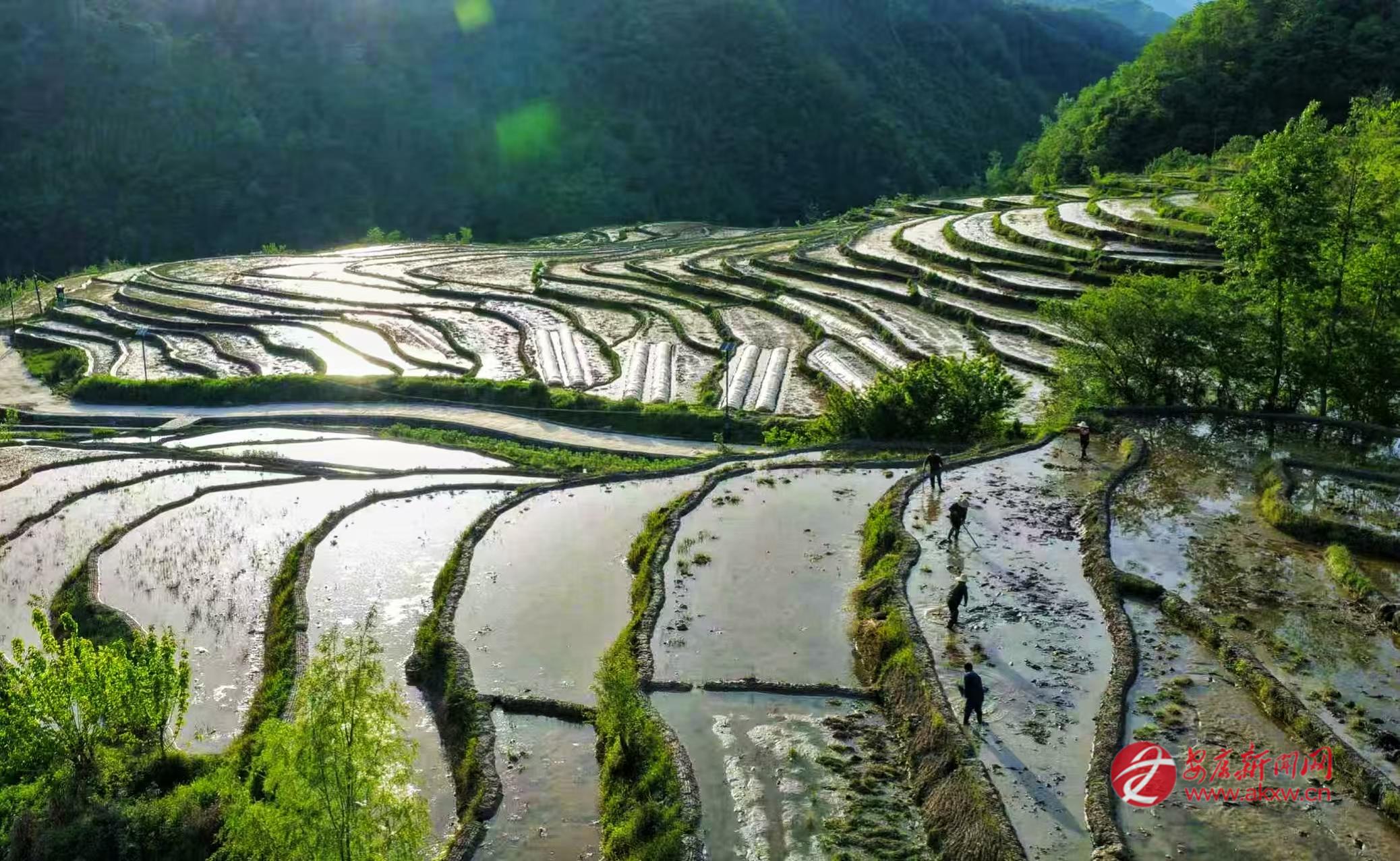 4月23日,嵐皋縣官元鎮(zhèn)古家村村民搶抓農(nóng)時(shí),對(duì)2000余畝古水田進(jìn)行深翻灌溉,為下一步插秧做好準(zhǔn)備。 邱仕君 攝