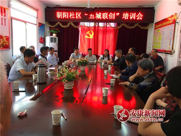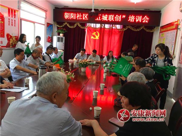 朝陽社區(qū)召開“五城聯(lián)創(chuàng)”培訓會。并對參會人員發(fā)放宣傳環(huán)保袋、紙杯等。
