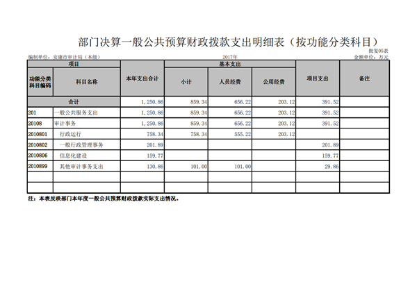 安康市審計(jì)局2017年部門決算公開(kāi)說(shuō)明