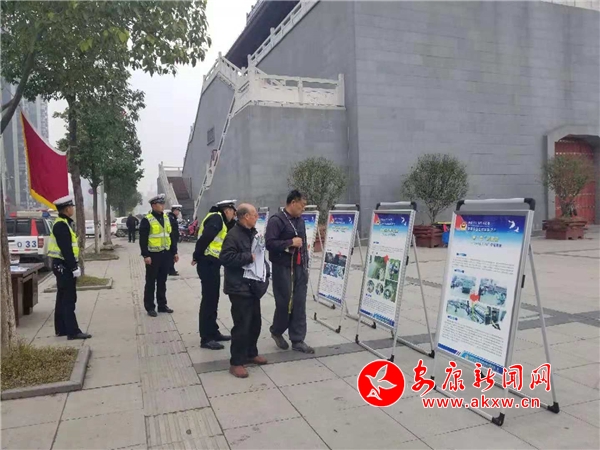 全國(guó)交通宣傳日江北交警隊(duì)在西城閣進(jìn)行安全宣傳并發(fā)放安全宣品。9Zk安康新聞網(wǎng)