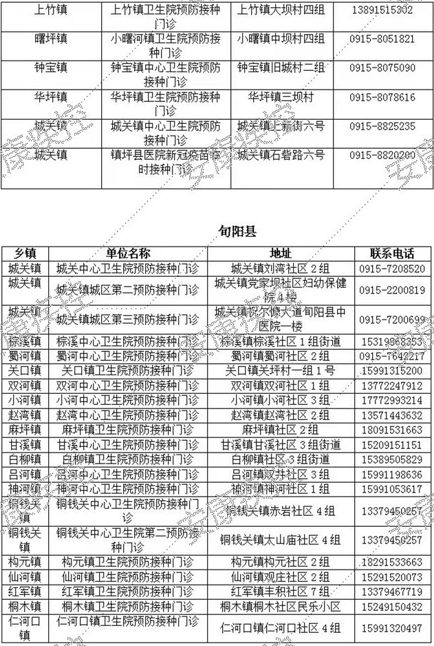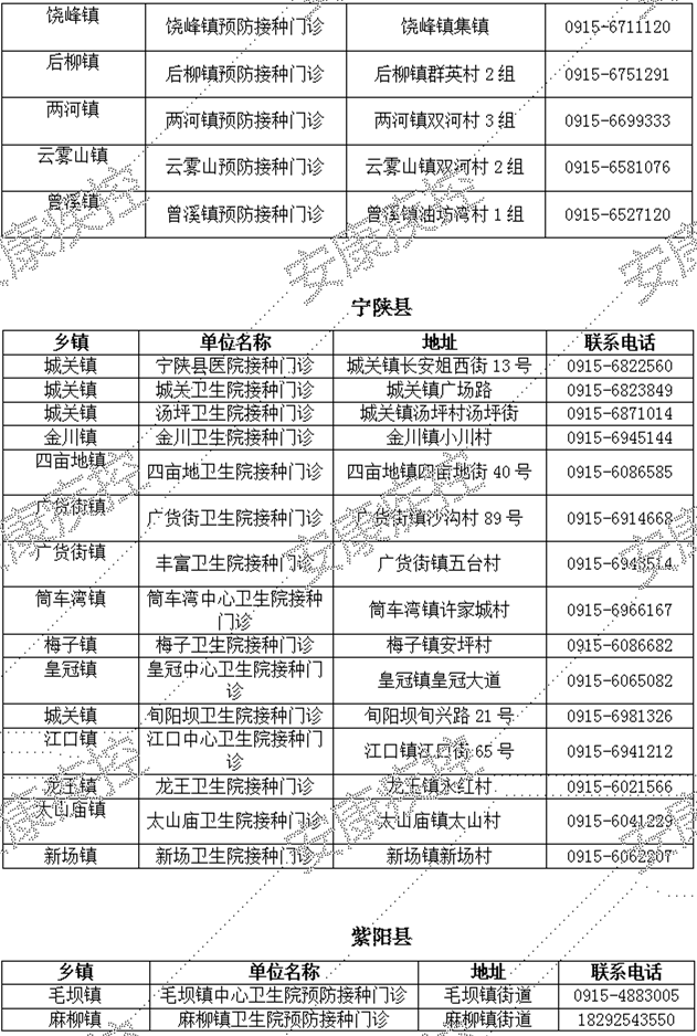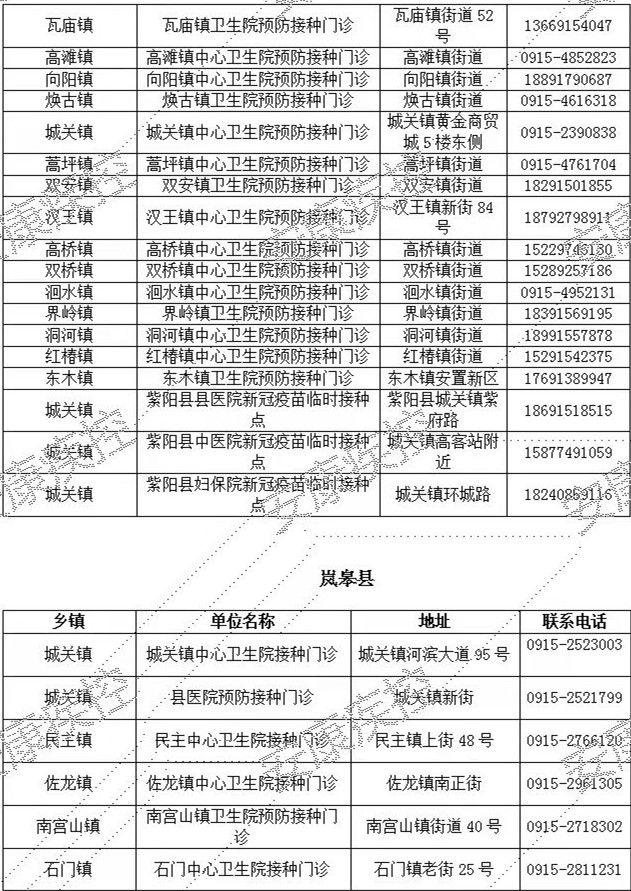 最新!安康市各縣(市、區(qū))新冠疫苗接種單位名單
