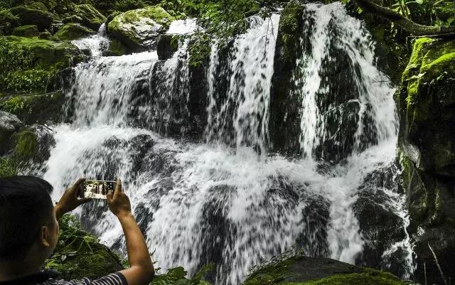 7月7日,游人在瀑布前拍攝。新華社記者陶明 攝x5p安康新聞網(wǎng)