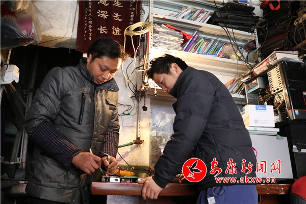 “師生友誼,情誼深長(zhǎng)”。這是2000屆電器專業(yè)三班全體學(xué)員送給劉得群的錦旗內(nèi)容。他也將錦旗掛在了店里,和書架一起成為這個(gè)小店的獨(dú)特標(biāo)志。劉得群的學(xué)生遍布全市。今年28歲的熊信峰從師劉得群五年多,兩年前在隔壁的當(dāng)鋪巷獨(dú)立門戶,開了自己的修理鋪。記者問他,為何要與師父鄰街開店?熊信峰說:“這樣就可以跟師父多學(xué)點(diǎn)兒,有生意了我們還可以合作。”說起師父,熊信峰評(píng)價(jià)道“亦師亦友,像長(zhǎng)輩一樣關(guān)懷自己。”劉得群不僅將畢生所學(xué)毫無保留地傳授給熊信峰,還會(huì)對(duì)他進(jìn)行心理上的開導(dǎo)和物質(zhì)上的幫助,兩家店相互照應(yīng),兩個(gè)人相互交流,維修經(jīng)驗(yàn)和服務(wù)理念得以傳承。xeg安康新聞網(wǎng)