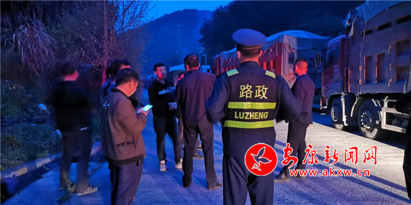本網(wǎng)訊(記者 張世虎 通訊員 程明)3月26日晚,在346國道安平公路老縣鎮(zhèn)七里溝村附近,路政巡查人員正在對(duì)6輛涉嫌超限運(yùn)輸車輛進(jìn)行檢查。M6a安康新聞網(wǎng)