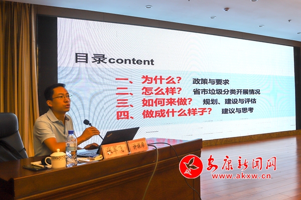 張軍飛先后主持完成《陜西省城市生活垃圾分類公共機構(gòu)建設(shè)導(dǎo)則》《陜西省城市生活垃圾分類示范片區(qū)建設(shè)標(biāo)準(zhǔn)》等省級規(guī)范與技術(shù)導(dǎo)則9項,是我省生活垃圾分類領(lǐng)域的專家。當(dāng)天,他從“為什么、怎么樣、如何做、做成什么樣子”四個方面就開展城市生活垃圾分類工作的現(xiàn)狀、規(guī)劃、建設(shè)、評估等方面進行了深入淺出、全面細(xì)致的講解。