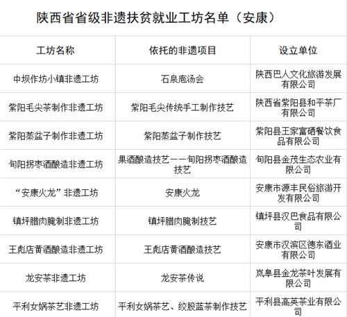 陜西首批“非遺工坊”公布!安康這9家入選!
