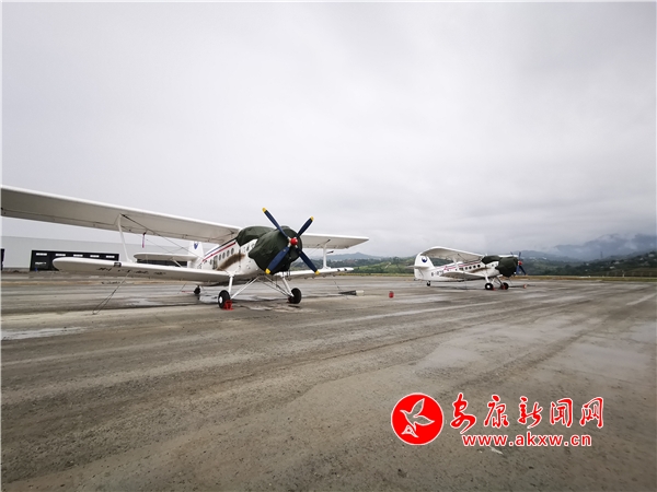 圖為在安康機(jī)場(chǎng)執(zhí)行林播任務(wù)的通航飛機(jī)