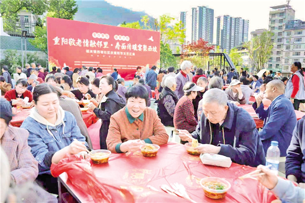 10月28日,嵐皋縣城關(guān)鎮(zhèn)西坡社區(qū)舉辦了“重陽(yáng)敬老情融鄰里·壽面?zhèn)髋缇畚髌?rdquo;主題活動(dòng)。廖霖 攝jhh安康新聞網(wǎng)