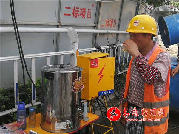 7月19日9時,記者來到巴山東路工地上,早晨的太陽已經(jīng)曬得人睜不開眼,工地上挖掘機轟隆作響,偶爾刮過一絲微風也參雜著滾燙的熱氣。也許是因為城市柏油路本就吸熱,翻開的土壤更是干燥,有的土粒透過褲管扎在腿上,也會隱隱作痛。修路工人們有的撩起衣角,有的只穿一件反光背心,埋著頭干活,有的抱著水壺酣暢痛飲,咕咕咚咚就是一大瓶水。施工方項目負責人李偉告訴記者,為避免高溫作業(yè),中午12時至下午15時會適當調(diào)整工人休息。T5m安康新聞網(wǎng)