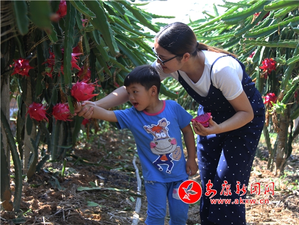 此時(shí)的王家臺(tái)村早已沒(méi)有了車水馬龍,而這里更有種“悠然見(jiàn)南山“的清新灑脫。微風(fēng)習(xí)習(xí),陽(yáng)光正好,王浩家的小兒子在田間跑來(lái)跑去,抱著火龍果吃的正香,看到此景讓人不禁感嘆道:王家臺(tái)的火紅豐收季,到了。