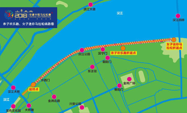 (一)5公里女子迷你馬拉松:水西門碼頭(起點(diǎn)) → 漢江公園 → 漢寧門 → 漢江四橋下(折返) → 漢寧門 → 漢江公園 → 水西門碼頭(終點(diǎn)),全程約5公里fuV安康新聞網(wǎng)