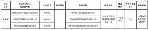 經(jīng)中國食品藥品檢定研究院檢驗(yàn),標(biāo)示為安徽大西北中藥飲片有限公司、安徽澤華國藥飲片有限公司、芍花堂國藥股份有限公司生產(chǎn)的3批次吳茱萸不符合規(guī)定,不符合規(guī)定項(xiàng)目為性狀。TWN安康新聞網(wǎng)