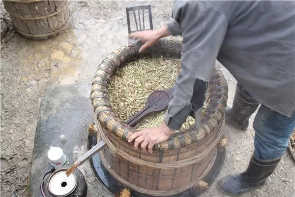 農(nóng)戶管叫第一樽流出的是冷汽酒,但是度數(shù)高,卻品嘗無味,喝多了不知不覺大醉,當(dāng)?shù)厝艘卜Q為頭鍋水(酒頭子)。如此釀酒卻是要換上三鍋水,頭鍋水就是酒頭子,二鍋水酒在四十至五十之間,三鍋水酒在四十度左右,也叫酒尾子。