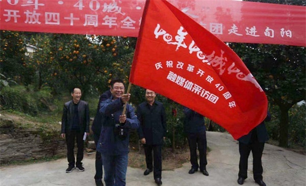 旬河入漢幾道彎,朝陽初灑太極城。10月24日,"40年 40城 40人"西部網(wǎng)慶祝改革開放四十周年全媒體采訪團(tuán)來到了旬陽,在呂河鎮(zhèn)冬青村劉永濤的農(nóng)家小院里,采訪團(tuán)代表魏永賢從旬陽縣委常委、宣傳部部長(zhǎng)邱德剛手里接過團(tuán)旗,開啟了對(duì)太極城改革開放以來發(fā)展成就的探尋之路。