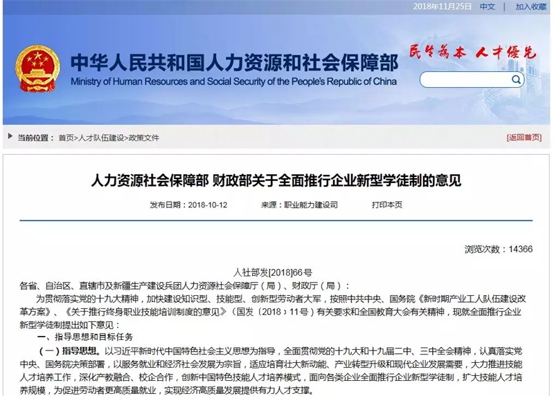 日前,人社部、財(cái)政部共同印發(fā)《關(guān)于全面推行企業(yè)新型學(xué)徒制的意見(jiàn)》。跟小編一起來(lái)看看,國(guó)家對(duì)企業(yè)新型學(xué)徒制的支持!