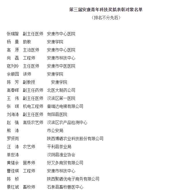 附:第三屆安康青年科技獎(jiǎng)擬表彰對(duì)象名單nys安康新聞網(wǎng)