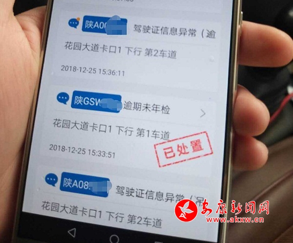 12月25日下午15時許,駕駛員劉某某駕駛的陜GSW5**小型轎車沿花園大道由北向南行駛途中,被高新公安分局交警大隊民警攔停接受檢查。從劉某某出示的證件中民警檢查發(fā)現(xiàn),存在駕駛車輛上道路行駛機動車未按規(guī)定時間進行檢驗違法行為,執(zhí)法民警現(xiàn)場給劉某某開具了“手機罰單”  ,這是高新公安分局交警大隊率先在全市試點應(yīng)用移動警務(wù)通集成指揮平臺系統(tǒng)開出的首張罰單。cjC安康新聞網(wǎng)
