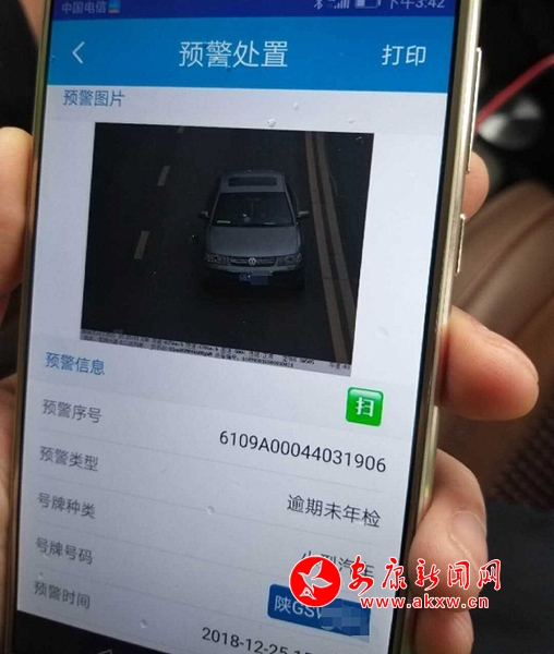 安康新聞網(wǎng)訊(通訊員 徐靖 胡智洵)執(zhí)法民警并沒有給駕駛員開具手寫的處罰單,而是通過一部“智能手機”, “掃一掃”駕駛證、車牌,現(xiàn)場打印出一張罰單。cjC安康新聞網(wǎng)