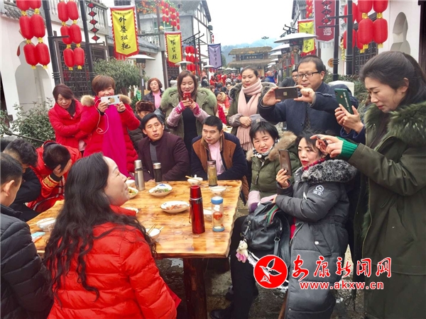 安康新聞網(wǎng)訊(記者張喬) 12月28日,石泉縣后柳鎮(zhèn)長街上,32桌庖湯宴開席,游客和當(dāng)?shù)厝艘黄鸩氯⒑染啤⒊匀,提前享受濃濃的年味。這只是2019年石泉庖湯會的預(yù)演,2019年1月12日(臘月初七)石泉第七屆漢水庖湯會將正式開吃。